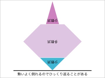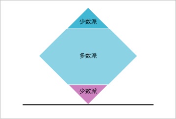 上と下に少数派がいて、それが菱形状に立っている。上部の少数派は様々な理由から多数派に支えられている。しかし、この形では当然ながら不安定だ。