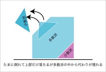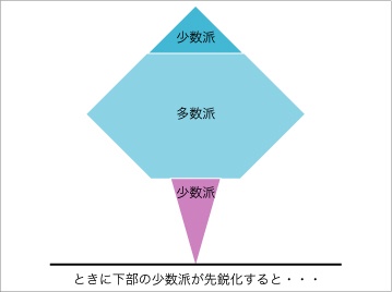 また、時に下部の少数派が先鋭化することがある。