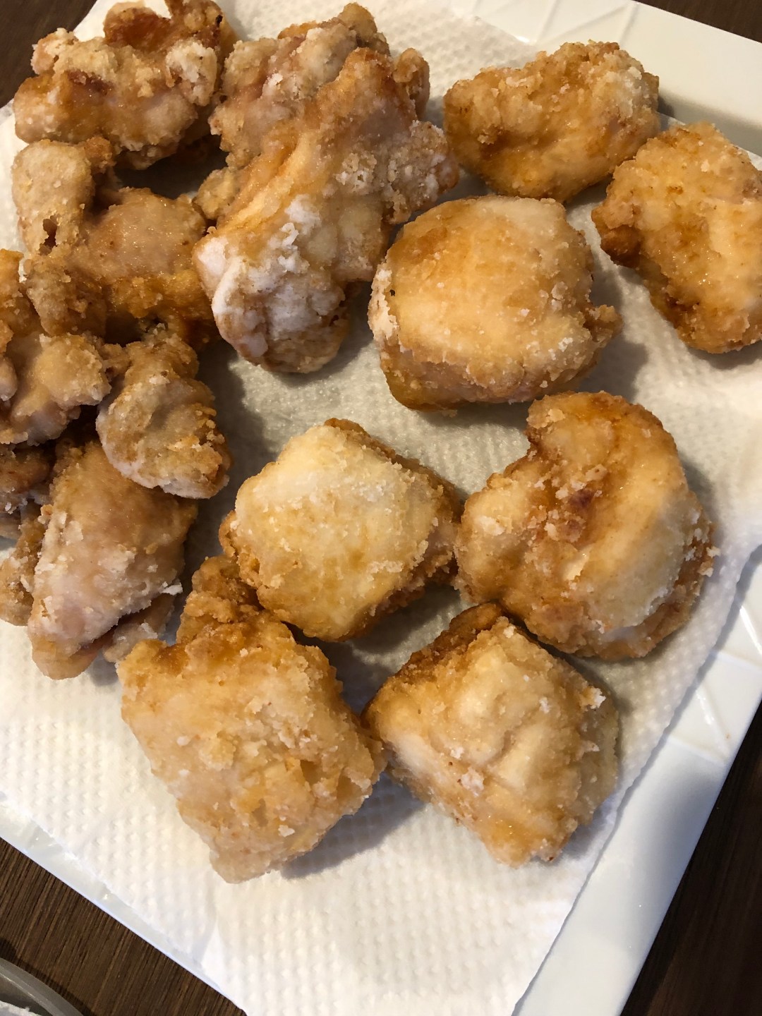 小学校2年生の娘は今日が1年間の修了式。それで昼前には帰ってくるのだけど、一番仲の良いお友だちもうちで一緒にお昼を食べることになった。そのお友だちは以前から何度か僕が作った唐揚げをうまいうまいと食べていたので、今回もその唐揚げを食べたいとのリクエストがあった。僕は仕事でお昼は付合えないので、朝から胸肉ともも肉の2種類の唐揚げを作った。これを食べるときは作りたてではないから、いつもよりは美味しくないかもしれない。